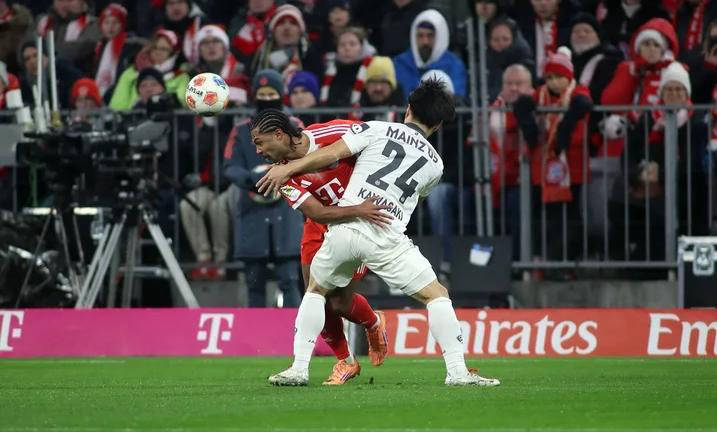 比赛早期,拜仁发动多次进攻,第6分钟卡尔禁区外远射被对方门将扑住;但第29分钟,拜仁前场配合默契,奥利塞从右路突破传球,凯恩分球给格纳布里,后者趟出传球助攻卡尔空门得手,主队率先破门。上半场末段,美因茨获得定位球机会,威廉-博文精准开球,科兹洛乌斯基头球折射破门,将比分追平。下半时形势更加激烈,第67分钟,伯尔送出传中,李在诚抢点头球得分,美因茨完成反超。拜仁紧接两次射门均未能转化为进球,直到第85分钟,凯恩禁区内被犯规赢得点球,并亲自主罚命中,帮助球队在主场守住一分。
