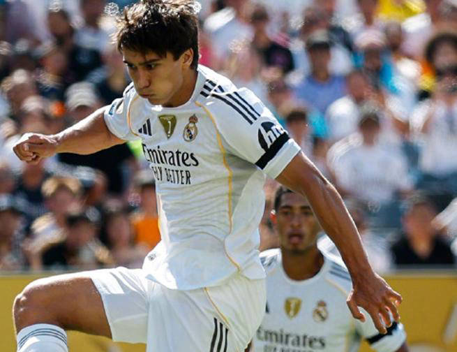 比赛开局仅10分钟,紧张的局势便被打破。灵动的贡萨洛·加西亚在禁区内精准接到居勒尔的传中球,随即凌空垫球攻门得手,帮助皇马首开纪录。目前,贡萨洛已在本届赛事中打入4球,状态显赫,甚至让复出的姆巴佩成为替补。